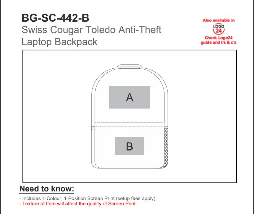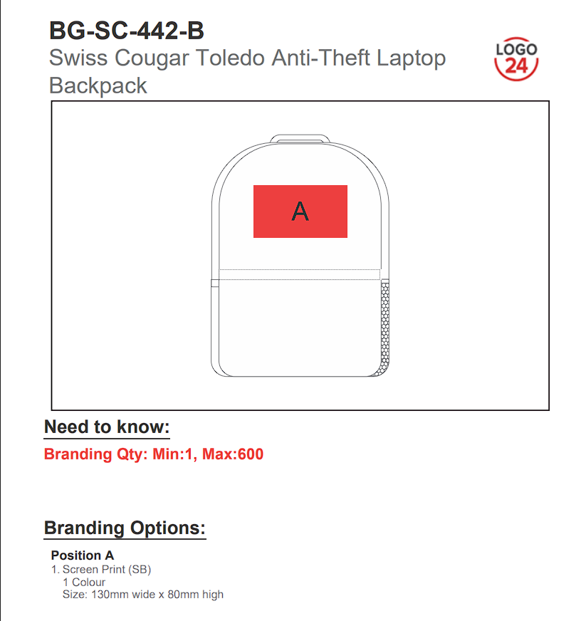 The Swiss Cougar Toledo Backpack is a strong choice for corporate gifting and promotional branding, offering high usability and consistent brand exposure in professional environments.